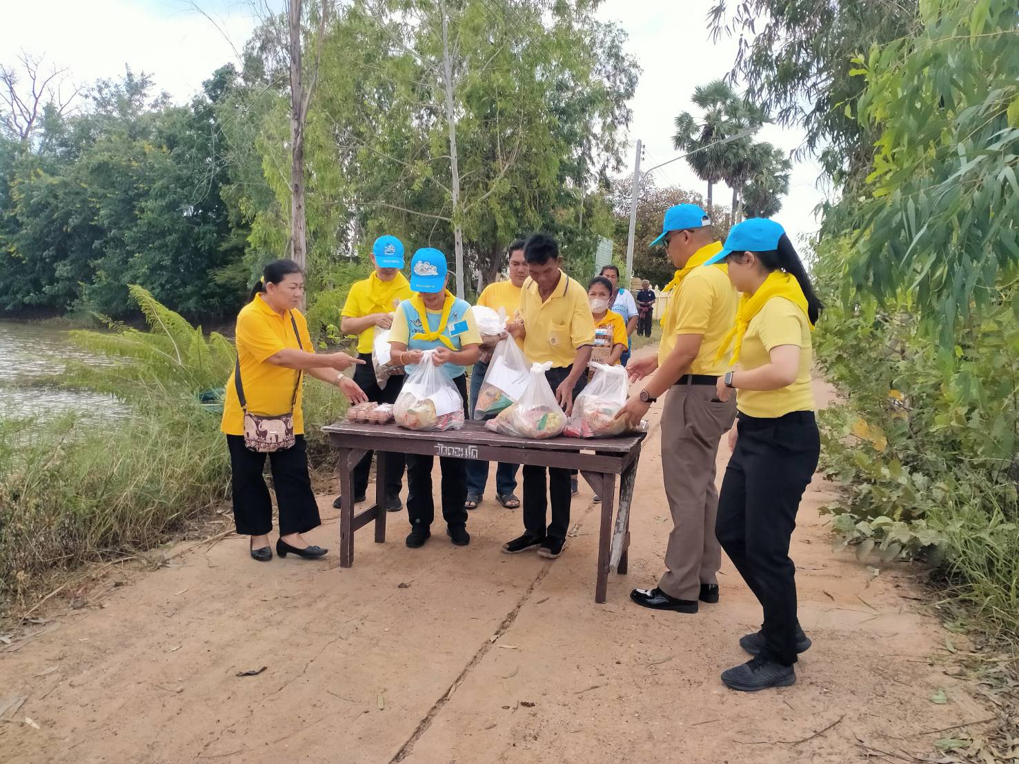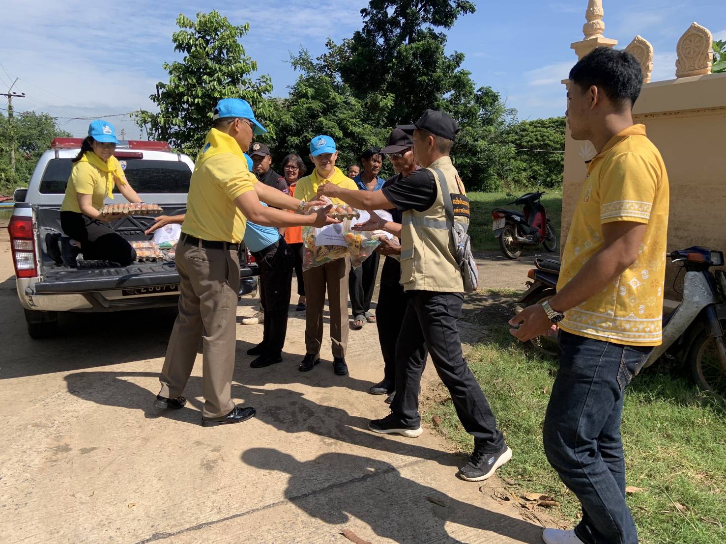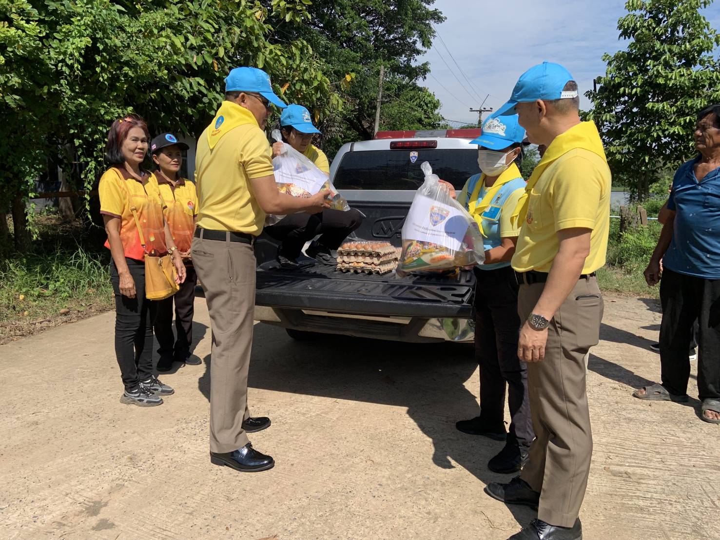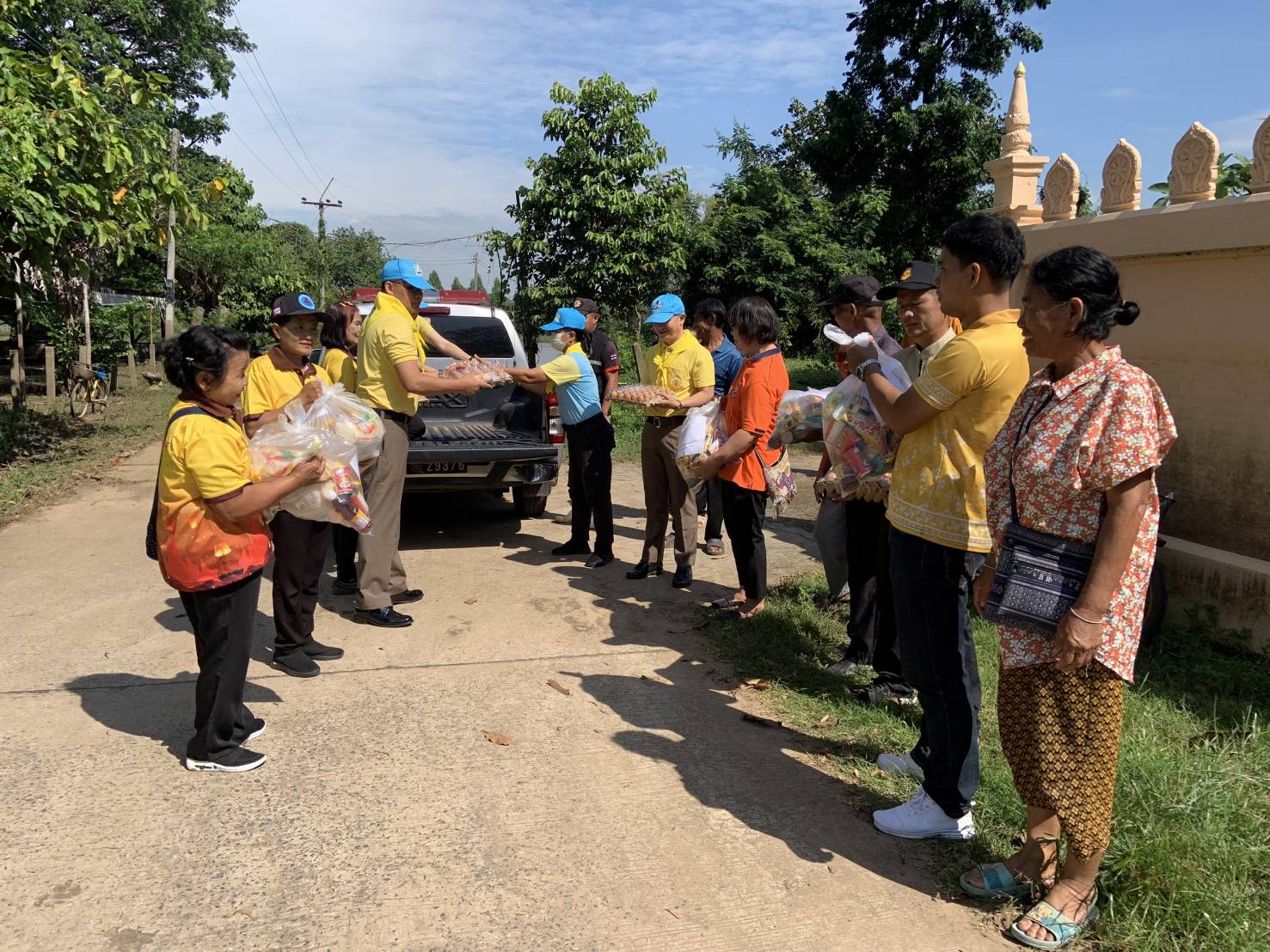 1 ตรวจคนเข้าเมืองจังหวัดมหาสารคาม นำกำลังพล พร้อมกับจิตอาสา 904, จิตอาสาพระราชทาน, อาสาสมัครสาธารณสุขประจำหมู่บ้าน และผู้ใหญ่บ้าน ผู้ช่วยผู้ใหญ่บ้าน