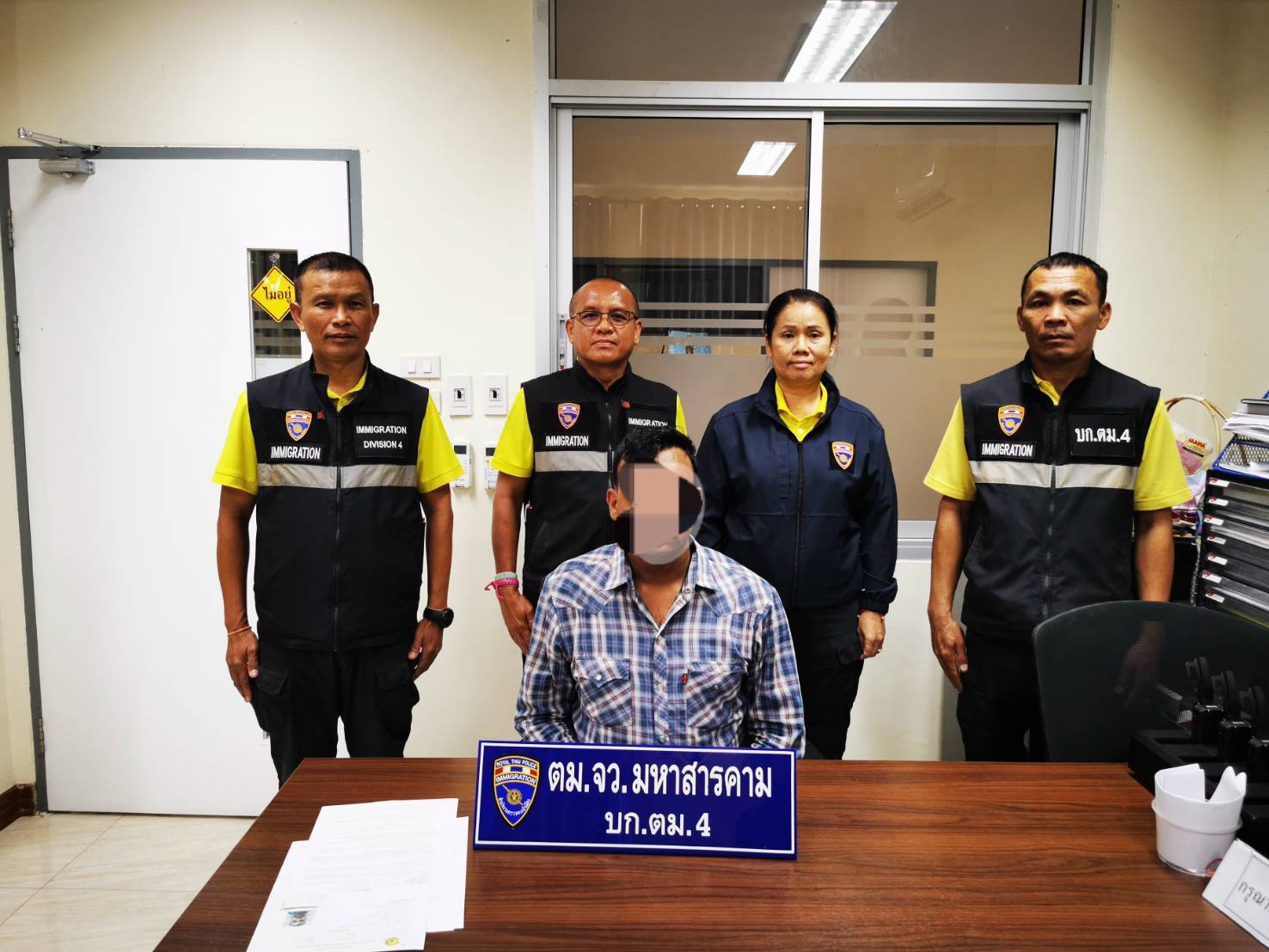 กองบังคับการตรวจคนเข้าเมือง 4 โดย พล.ต.ต.ปิยะอนันต์ โตสกุลวงศ์ ผบก.ตม.4, พ.ต.อ.ปรีชา เจียห์สกุล รอง ผบก.ตม.4 และ พ.ต.อ.มณุวัฒน์ กอสนาน รอง ผบก.ตม.4 สั่งการให้ ตม.จว.มหาสารคาม นำโดย พ.ต.ท.สุพล ศรีพัก สว.ตม.จว.มหาสารคาม พร้อมชุดสืบสวน ร.ต.อ.หญิง ขวัญเรือน แก้วสารพัดนึก, ร.ต.ต.วิเชียร รักษา รอง สว.ตม.จว.มหาสารคาม, ด.ต.อานันท์ชัย ศรีโพธิ์อุ่น และ ด.ต.วิชัย ชาติมูลตรี ผบ.หมู่ ตม.จว.มหาสารคาม บูรณาการร่วมกับหน่วยในพื้นที่ X-Ray คนต่างด้าวผิดกฎหมาย