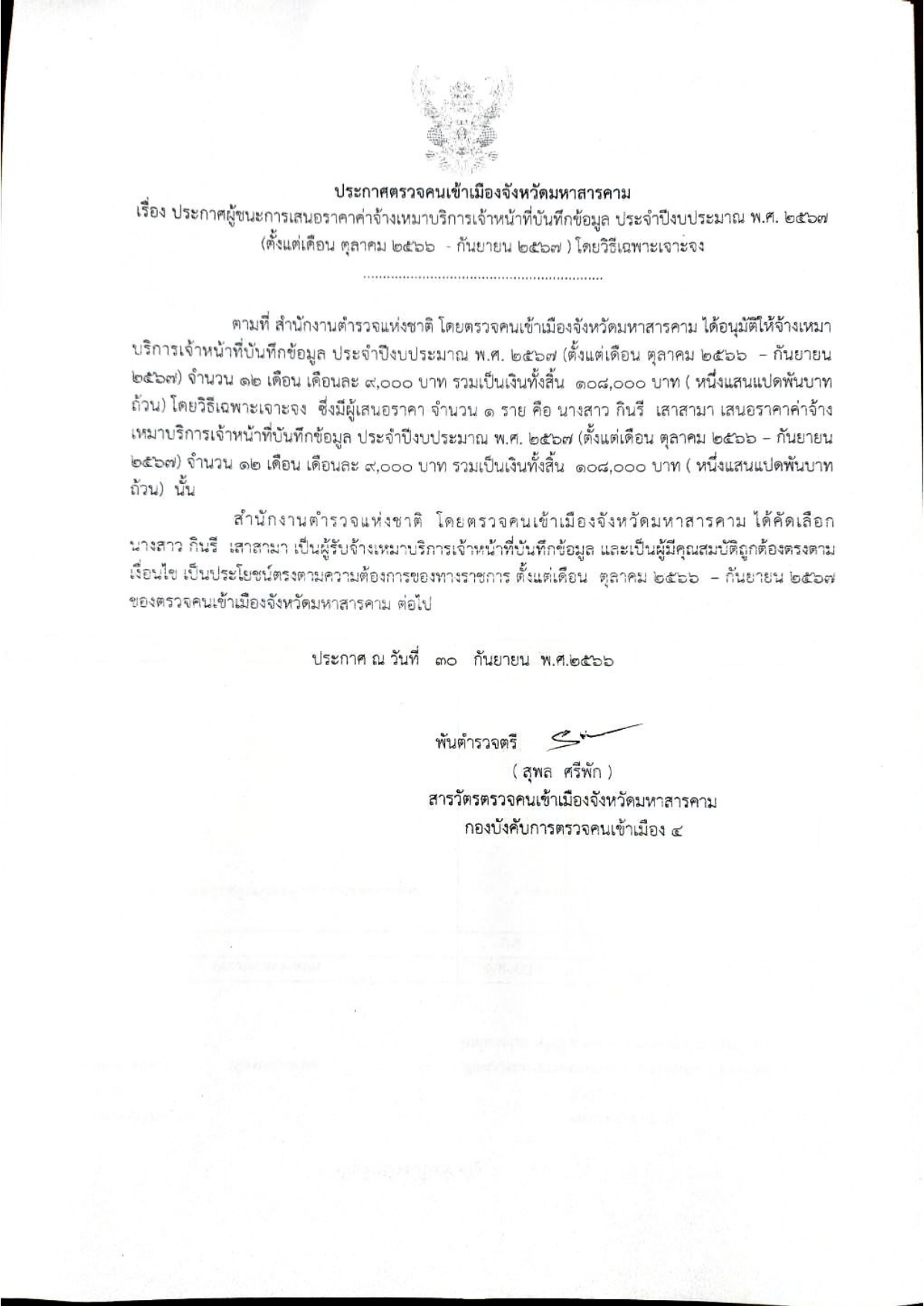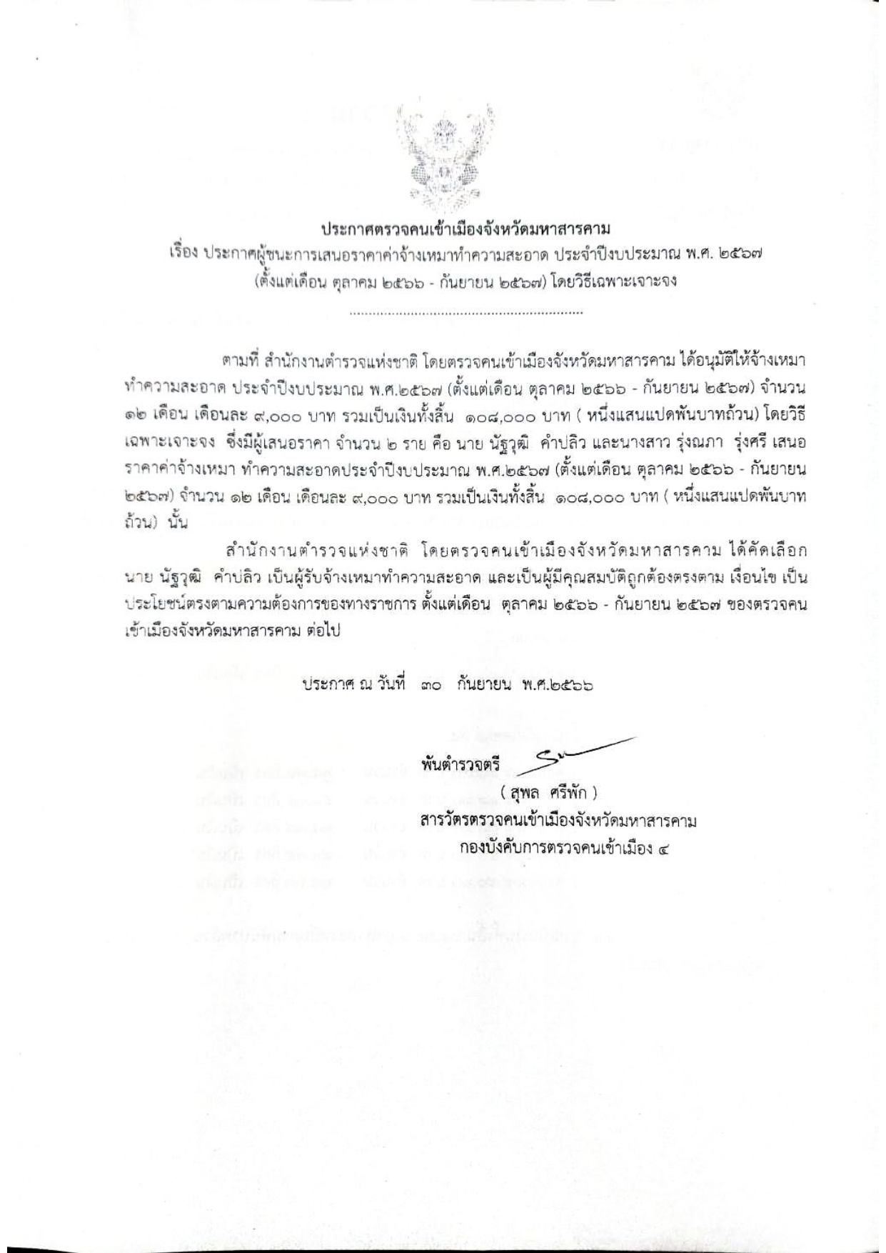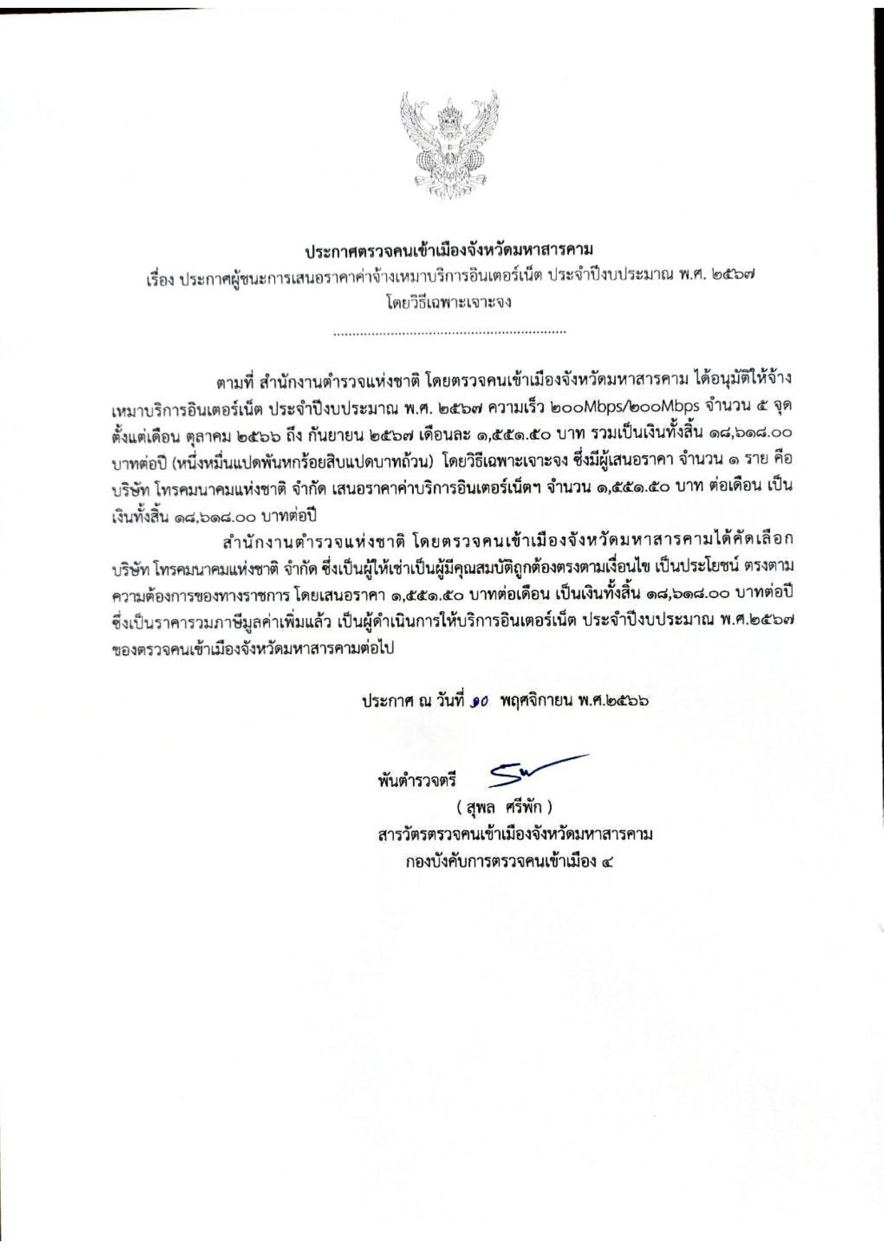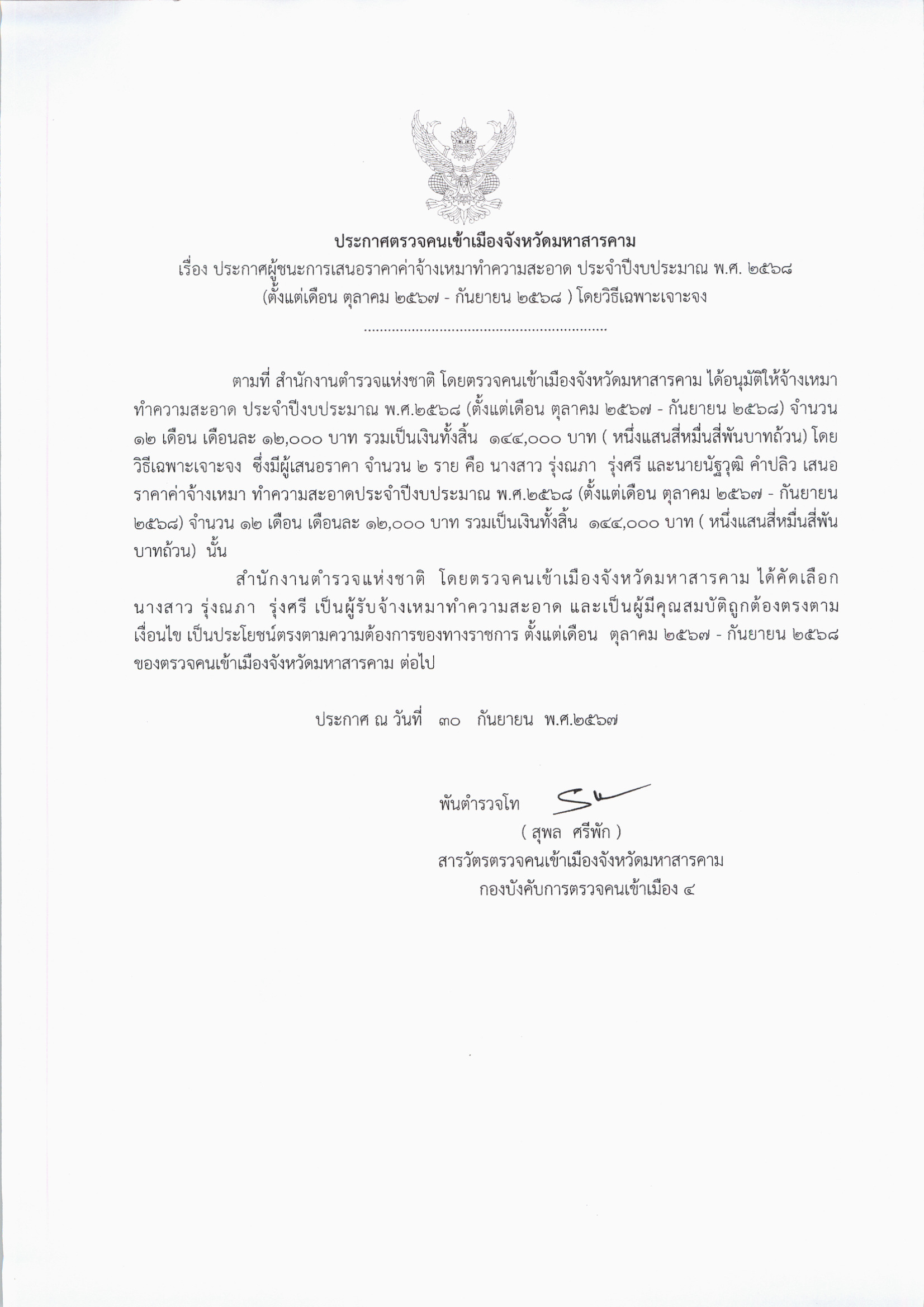 - ประกาศเผยแพร่สาระสำคัญของสัญญาจ้างก่อสร้างอาคารที่ทำการตม.จว.มหาสารคาม